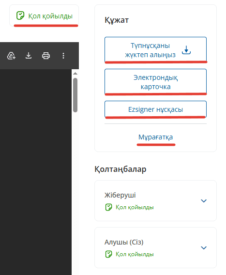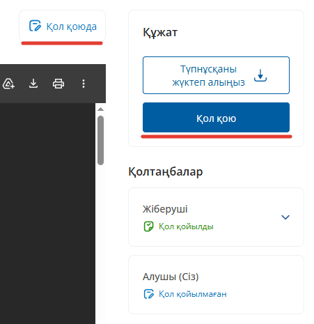 Құжатты ашқаннан кейін, оның мазмұнымен танысып, ЭЦҚ арқылы қол қоюыңызға болады: