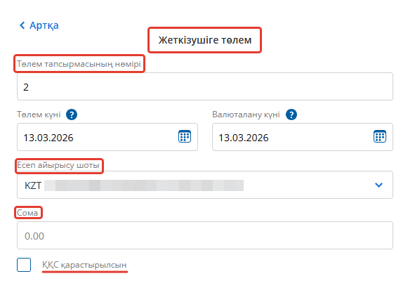 Жеткізушіге төлем тапсырмасын қалай жасауға болады?