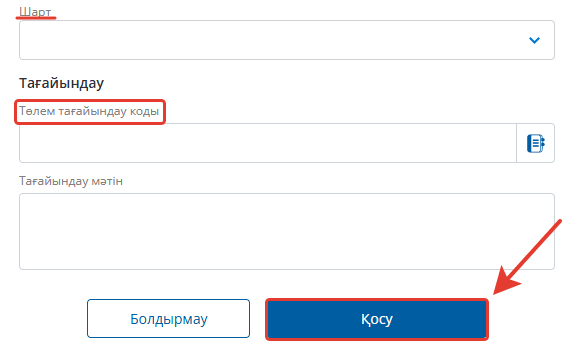 Егер келісімшарт болса, оны қосуға болады. Содан кейін төлемнің тағайындалу кодын көрсетіңіз. Тағайындау мәтінін толтыру міндетті емес. "Сақтау" батырмасын басыңыз.