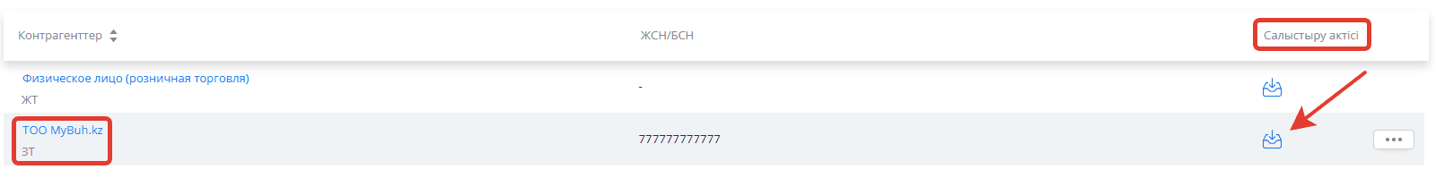 Енді сіздің тізіміңізде жаңа контрагент пайда болды, ол бойынша сіз барлық операциялар бойынша тексеру актісін ала аласыз.
