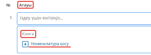 Келесі, номенклатура тізіміне өтіңіз, сіз мұнда жаңа тауар енгізе аласыз немесе бұрыннан барын таңдай аласыз, оның санын енгізіп, «Қосу» батырмасын басыңыз.