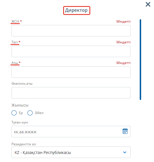 Оның дұрыс ИИН, ФИО, жынысы, туған күні, тұратын ел, және паспорт немесе куәлік деректерін енгізіңіз, бұл құжаттар сенімхат толтыру кезінде қажет болуы мүмкін.