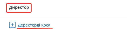 Директор туралы мәліметтерді қосу немесе өзгерту үшін "Директор" терезесінде "Менің деректемелерім" бөлімінде басыңыз.