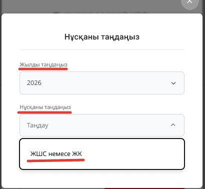 Құжатты қалыптастыру үшін жылды және нұсқаны - ЖШС немесе ЖК таңдауыңыз қажет.