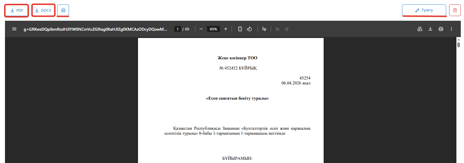 Есеп саясаты сіздің деректеріңіз негізінде қалыптастырылды. Сіз құжатты PDF немесе DOCX форматында жүктей аласыз, сондай-ақ құжатты басып шығарып немесе өңдей аласыз.