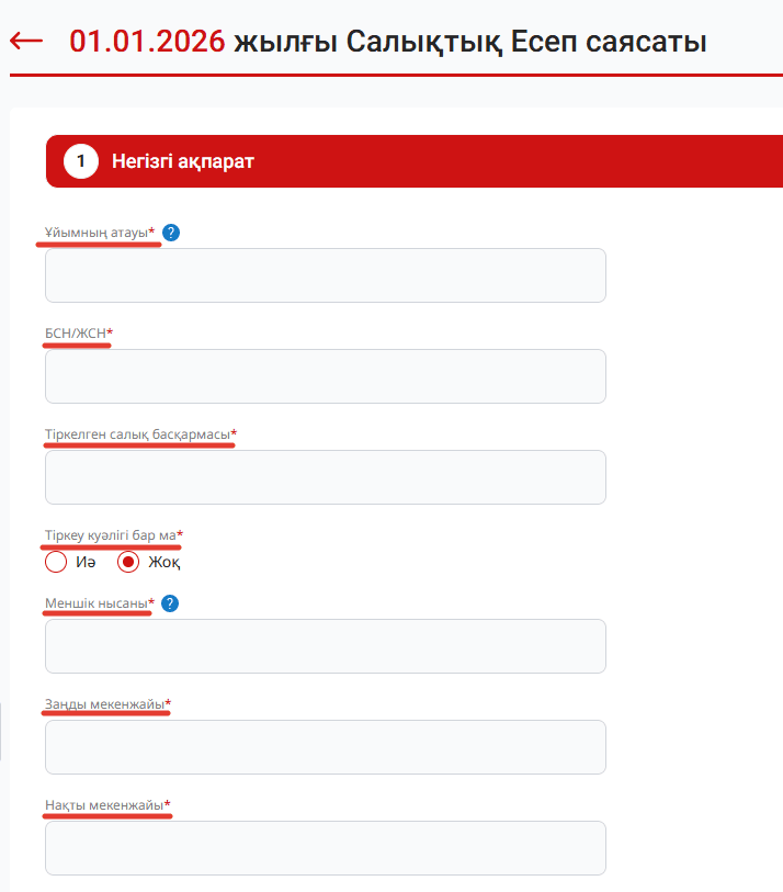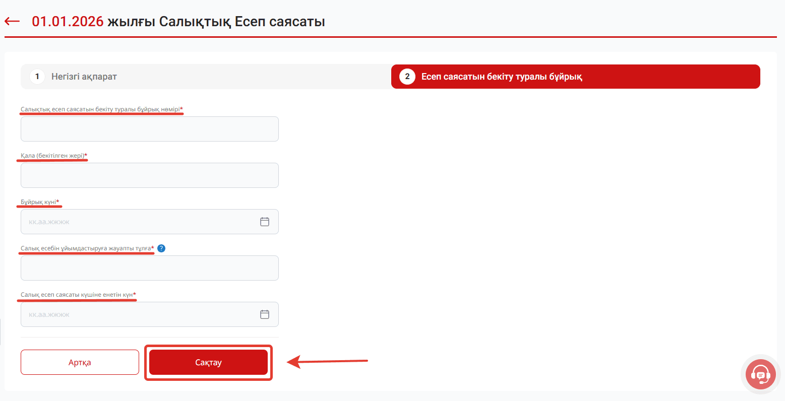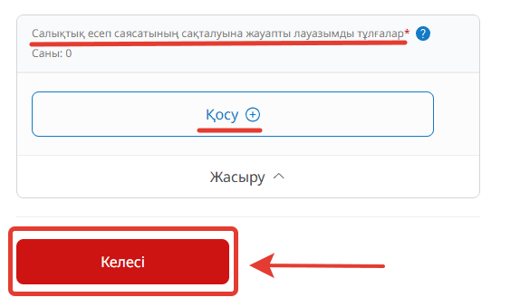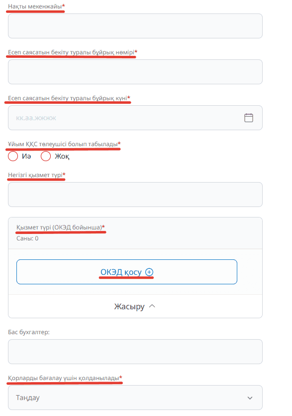 Барлық міндетті өрістер белгіленген және келесі кезеңге өту үшін толтырылуы тиіс.