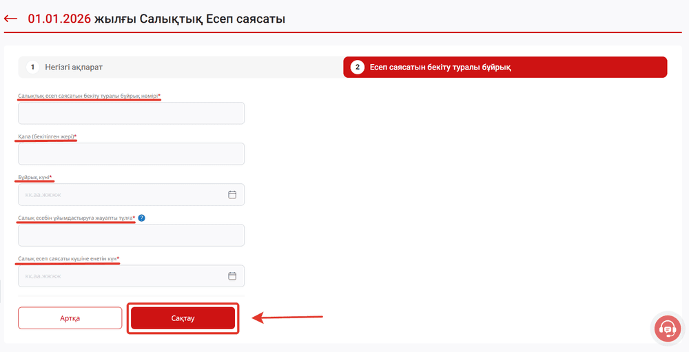Барлық өрістер толтыру үшін міндетті болып табылады. Мәліметтерді енгізгеннен кейін "Сақтау" батырмасын басу қажет.