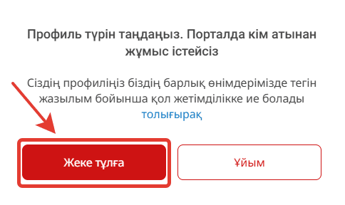Жеке тұлға ретінде тіркелу үшін "Жеке тұлға" батырмасын басыңыз.