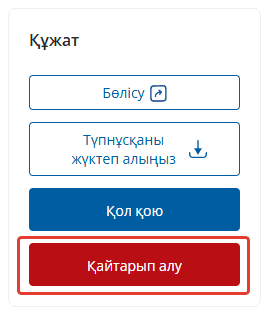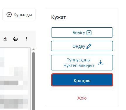 Құжат сәтті қол қойылады. Контрагентпен құжат қол қойылғанға дейін оны қайтарып алуға мүмкіндігіңіз бар.