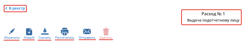 После сохранения документа перед вами открывается страница просмотра документа в печатном виде. На этой странице вы можете изменить этот документ, скачать, распечатать или удалить. Также вы можете направить готовый документ на почту себе или вашему контрагенту нажав на кнопку «Отправить».Отсюда из предпросмотра вы можете перейти в реестр подобных документов нажав на кнопку «В реестр».