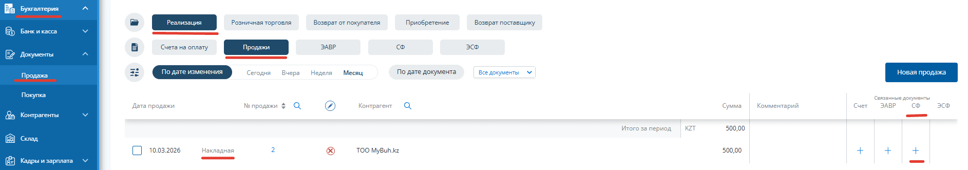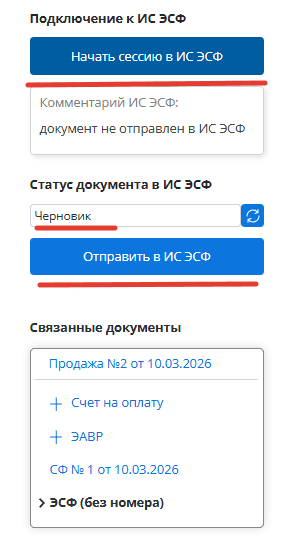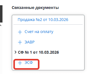 На странице предпросмотра вы можете создать связанный документ - давайте попробуем создать ЭСФ.Нажмите на плюс ЭСФ.