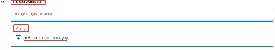 Далее переходите к списку номенклатуры, вы можете ввести здесь новый товар или выбрать уже существующий, введите его количество и нажмите «Добавить».