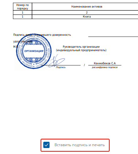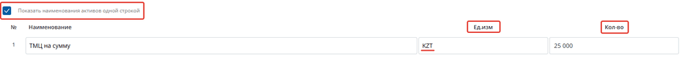 Если Вы хотите выписать доверенность в денежном измерении, то вам необходимо поставить галочку «Показать наименования активов одной строкой», указать валюту и изменить в количестве на сумму денег, нажмите «Добавить».