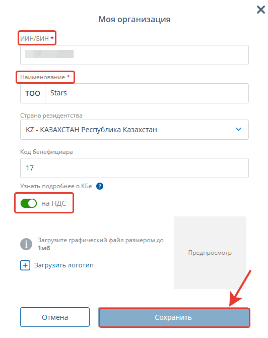 При регистрации вы ввели данные о компании. Чтобы изменить основные реквизиты, нажмите "Редактировать". Исправьте некорректные данные и нажмите "Сохранить".