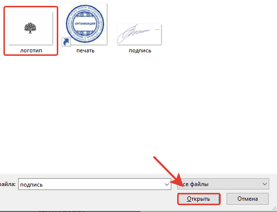Чтобы загрузить логотип, нажмите на значок плюса (+) и выберите ваш логотип в открывшемся окне.