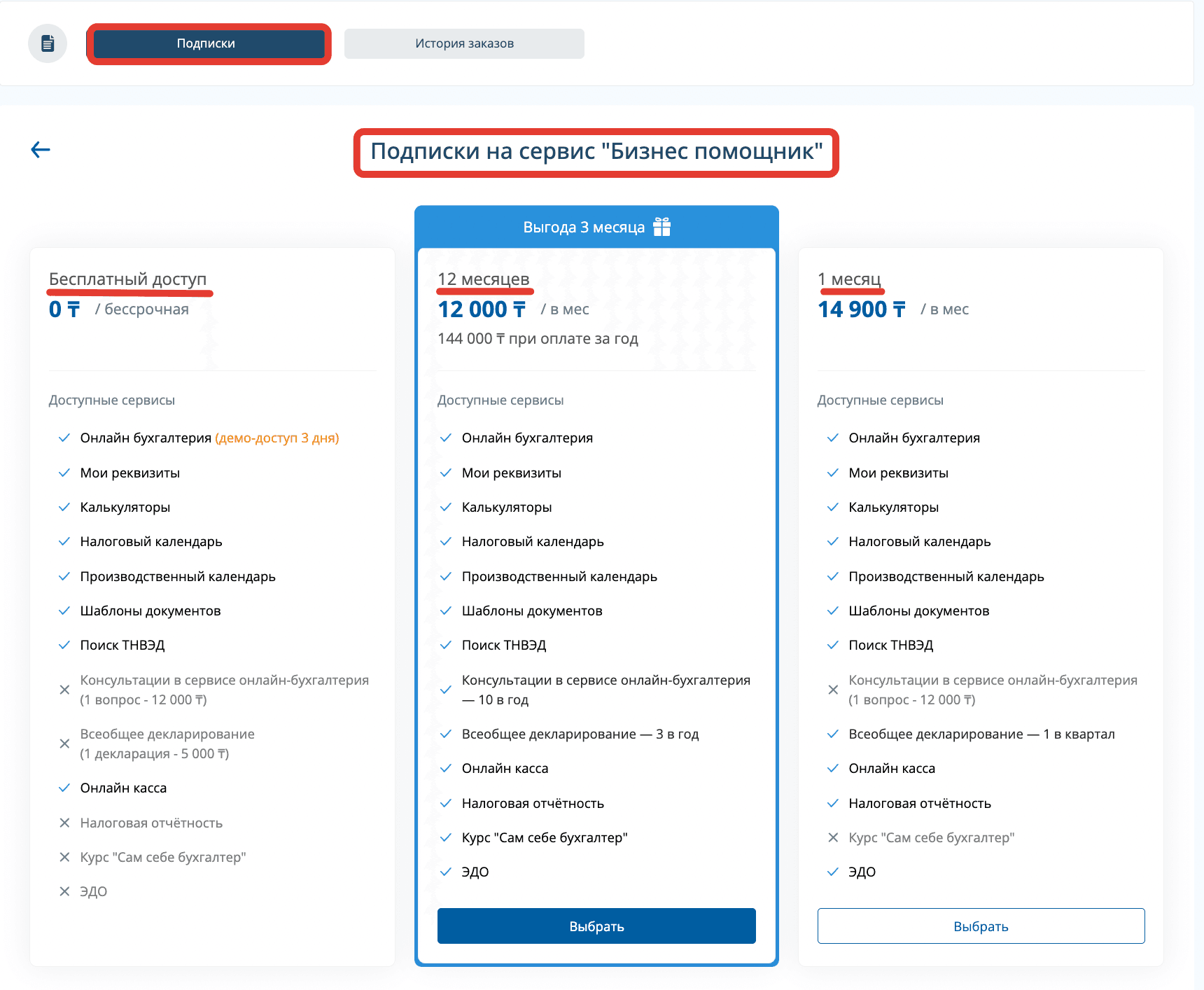 В разделе "Подписки" Вы можете выбрать доступные тарифы. У нас их 3: пробная версия, подписка на месяц и на год.