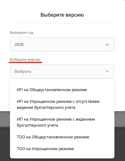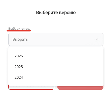 После нажатия на кнопку «Добавить документ» появится окно, где можно выбрать версию. В этом окне необходимо указать год и выбрать версию.