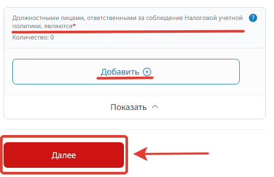 Дополнительно заполняется информация о статусе плательщика НДС, основном виде деятельности и кодах ОКЭД. Указываются сведения о главном бухгалтере, выбранном методе оценки запасов, а также перечень должностных лиц, ответственных за соблюдение налоговой учетной политики.